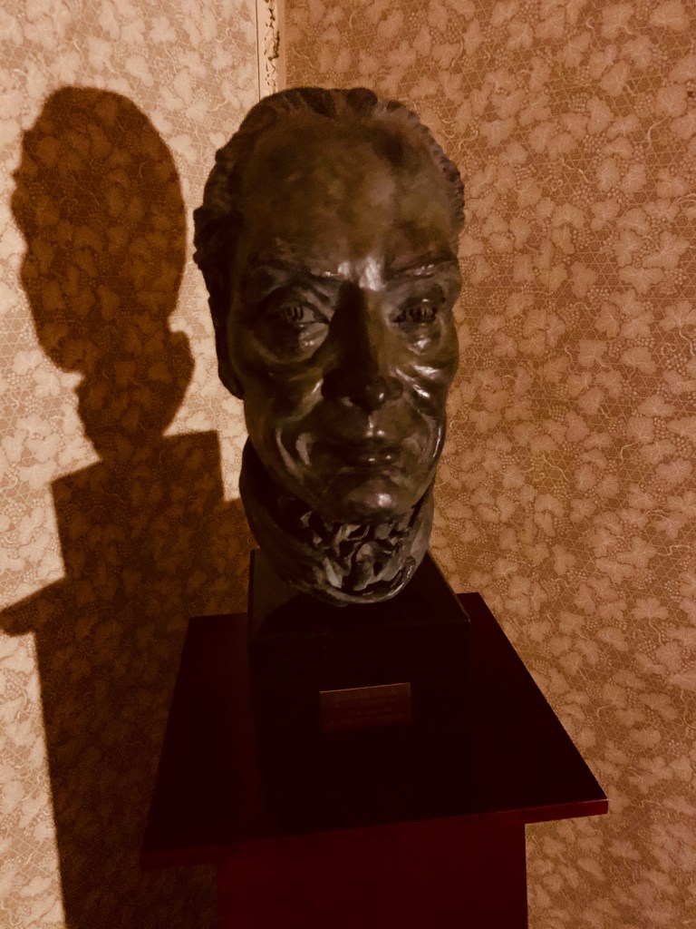 Ann stood with her back to the chest of drawers and mirror and felt the distinct sensation of being watched. As she turned, we saw a solid shadow figure walk across the room, gain a more pronounced silhouette as it briefly looked out from the mirror before continuing out of the room and disappearing on the landing. The hairs on the back of our necks stood up as the bust of Aaron Burr glowed an ominous crimson with the light of the K2 reflecting beneath it.